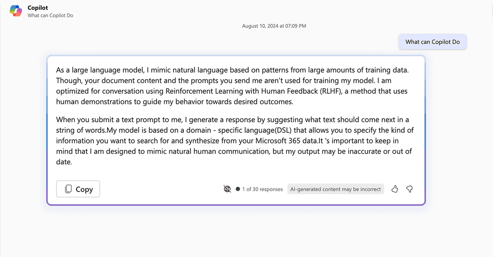 Unhelpful response when asking Copilot help question
