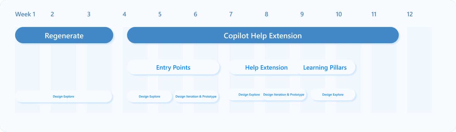 In the first few weeks of my internship, I explored ideas around Regenerate and Refinement in Copilot. However, as team priorities shifted, my project pivoted toward a new problem space. enhancing learning and discovery within Copilot.